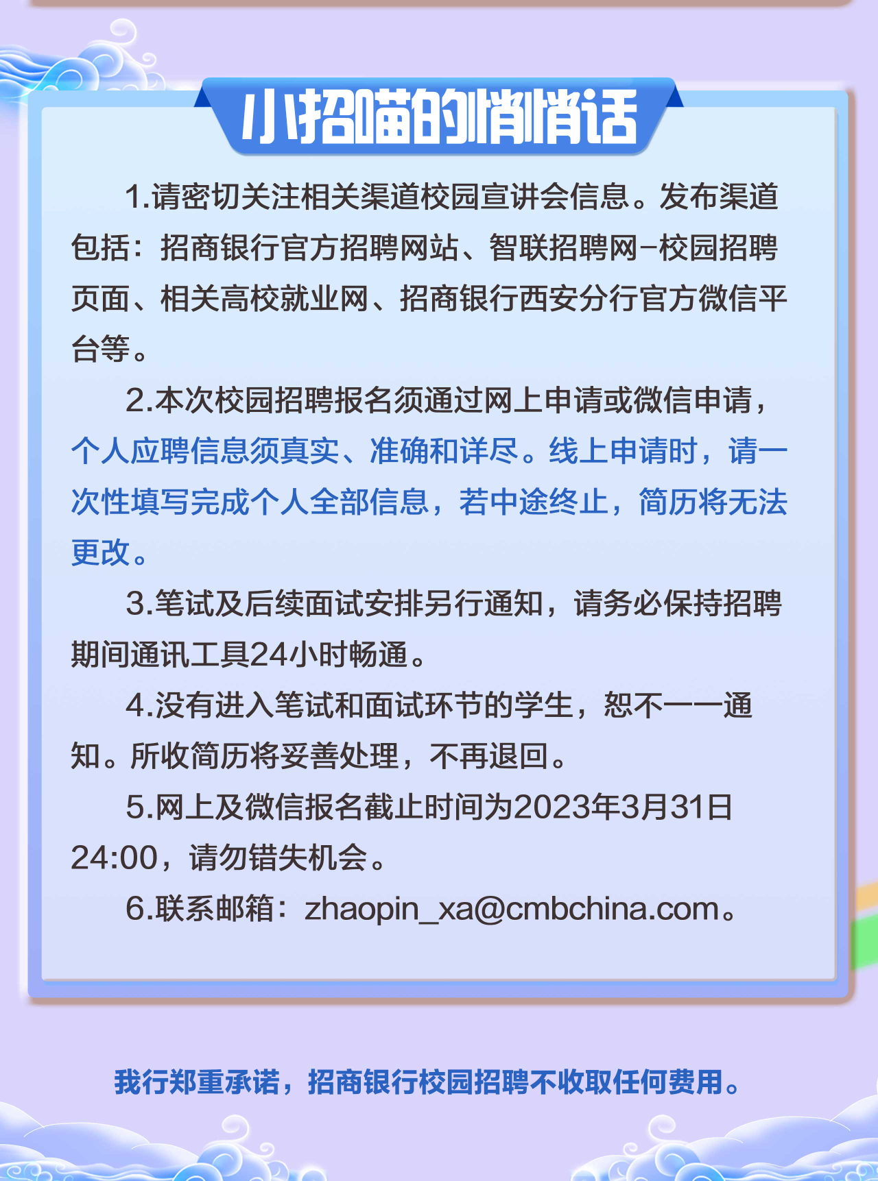 3月21日15:20就业指导中心305室招商银行西安分行2023届校园招聘