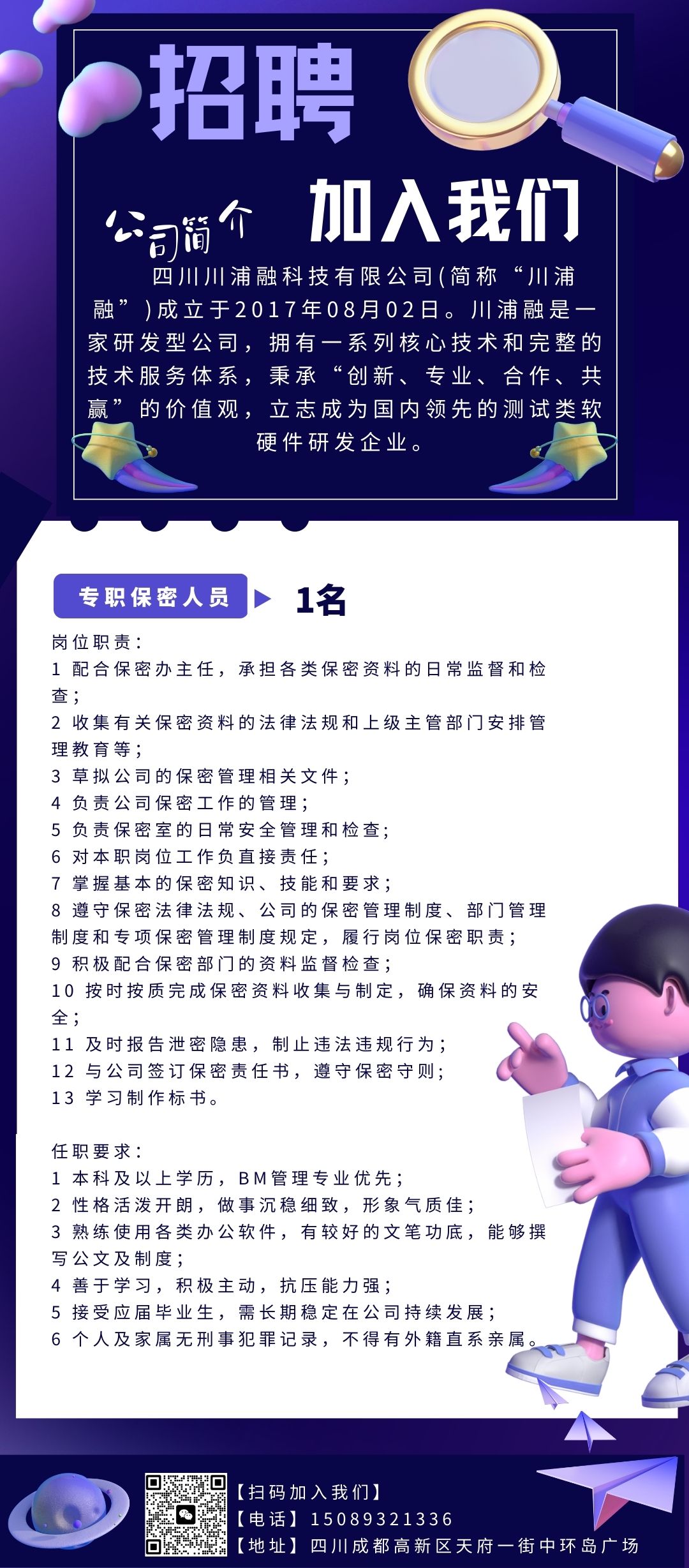 任职要求:
